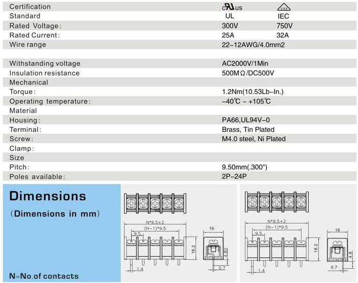 栅栏式接线端子 <XY45S-9.5