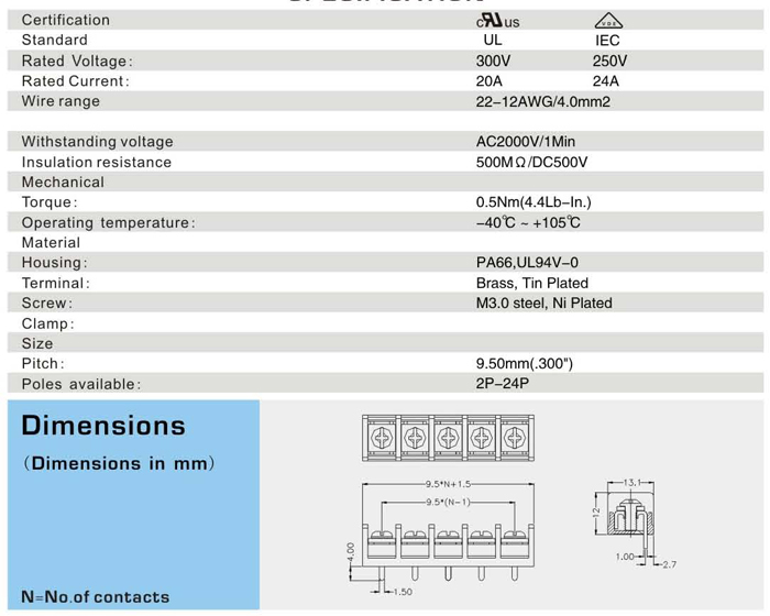 栅栏式接线端子 <XY9500-9.5