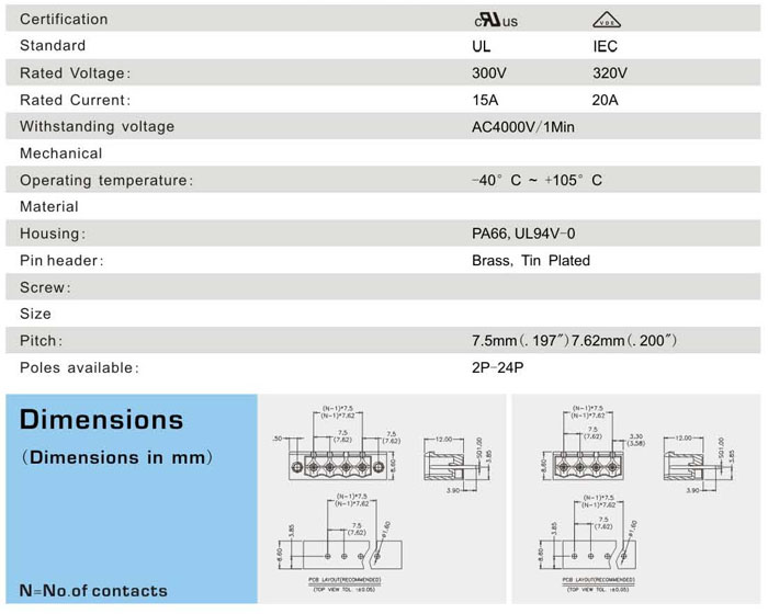 插拔式接线端子 <XY2EDGV-7.5/7.62